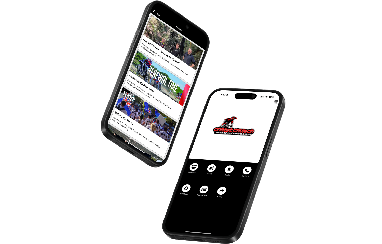 Go to the App Store or Google Play, search for Sporty NZ, download then search for Christchurch Offroad Motorcycle Club.